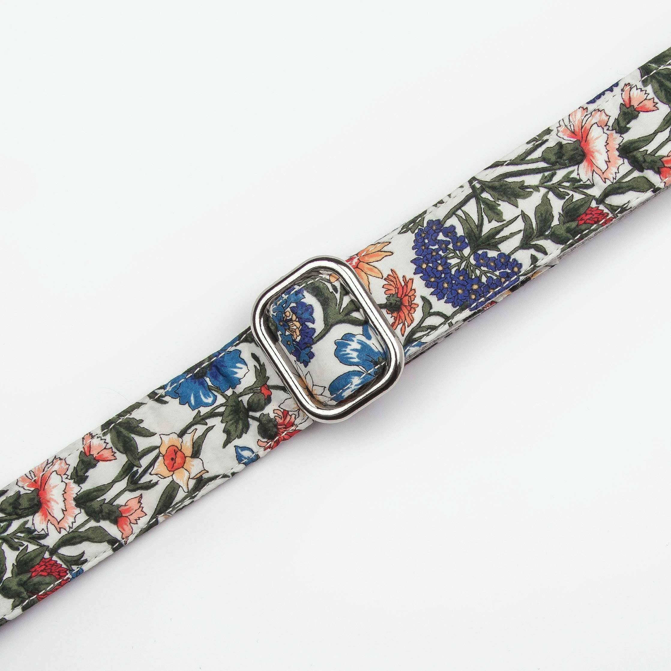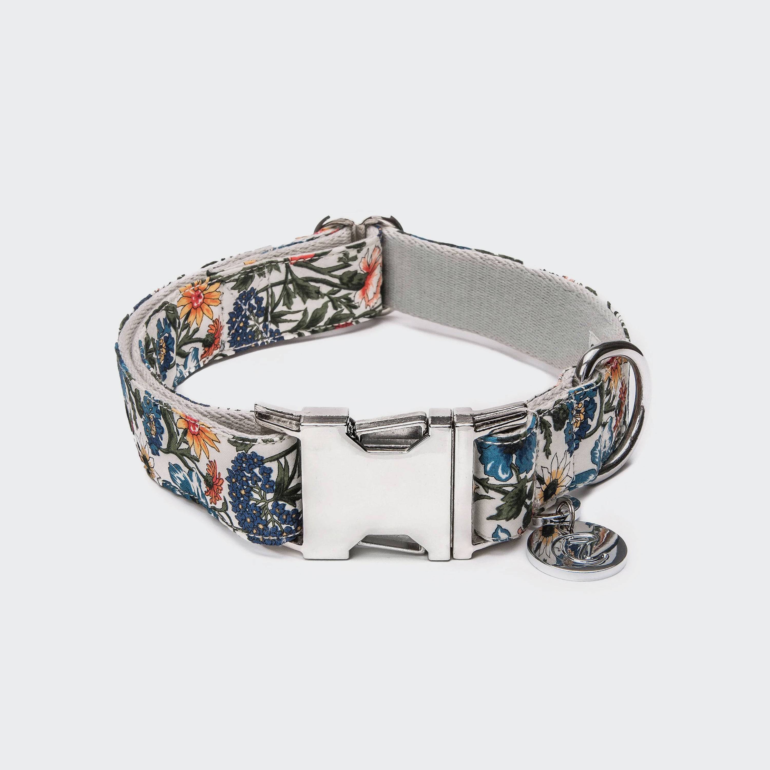 Die neue Halsband CORNFIELDS sorgt für einen extra langen und blumigen Sommer. Die Serie ist aus original Liberty London Stoff produziert, verstärkt mit einem reinen Baumwollgurtband und leichten Metallteilen.