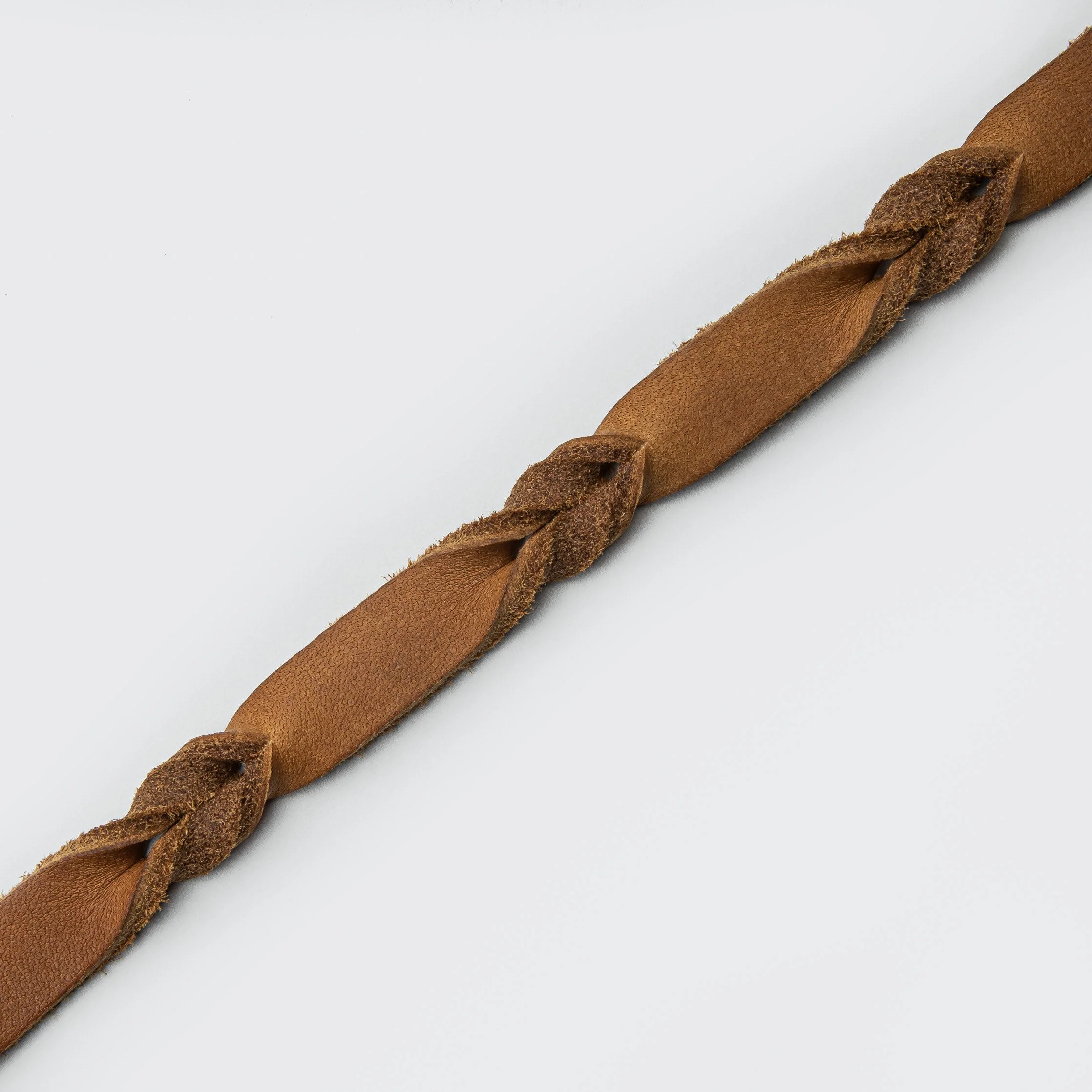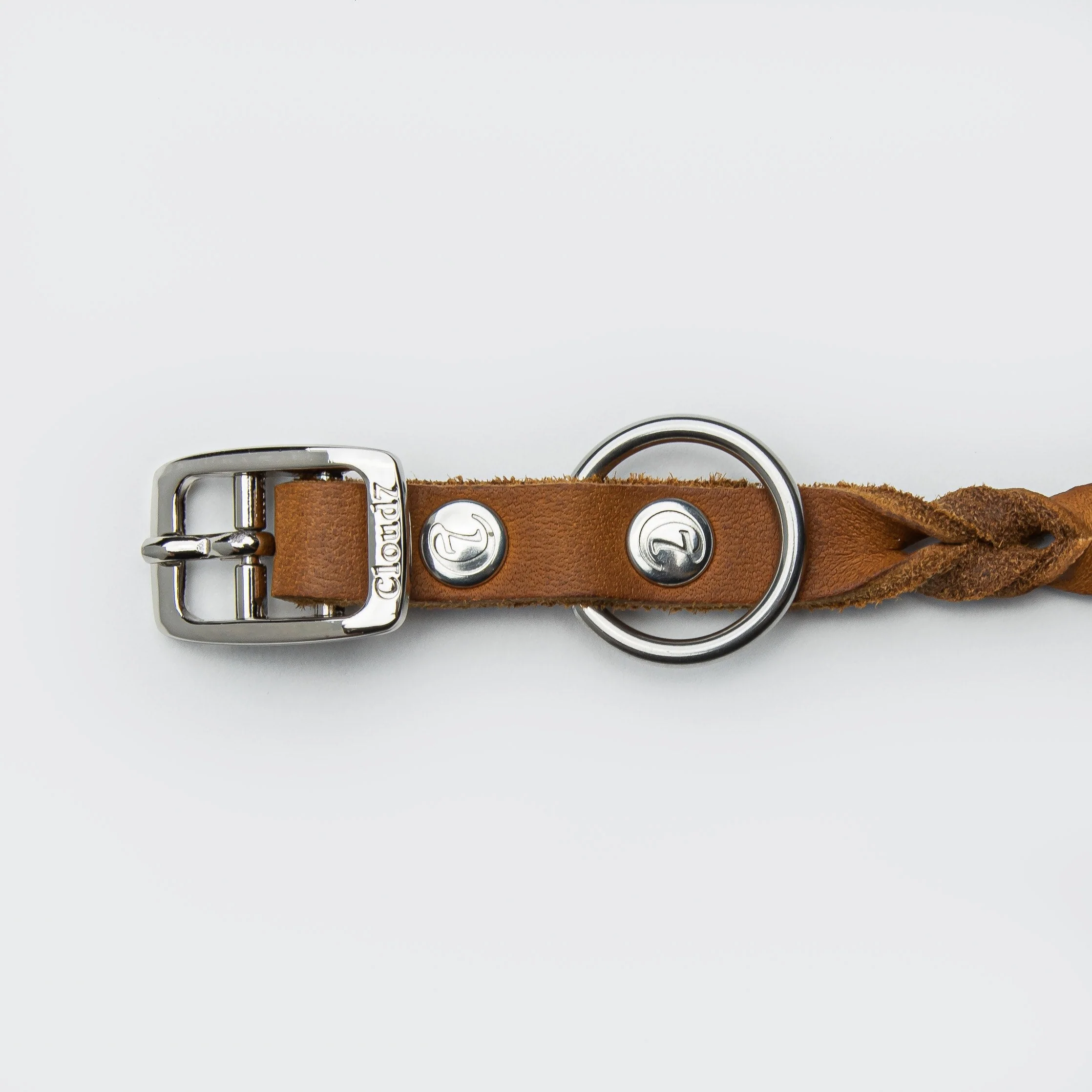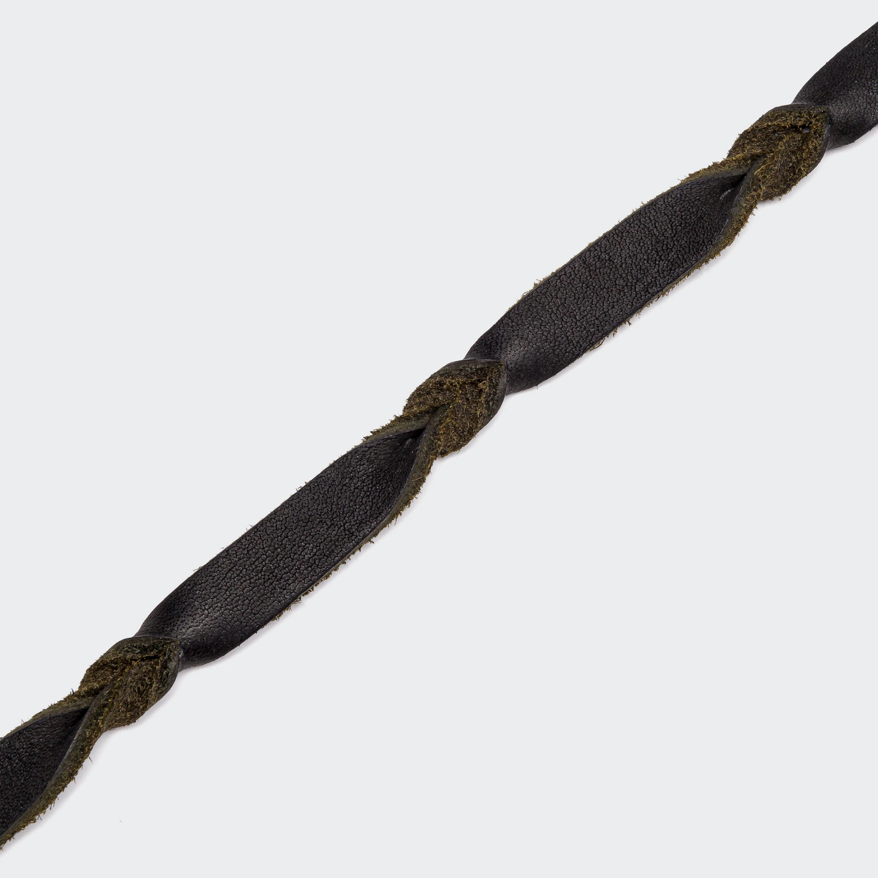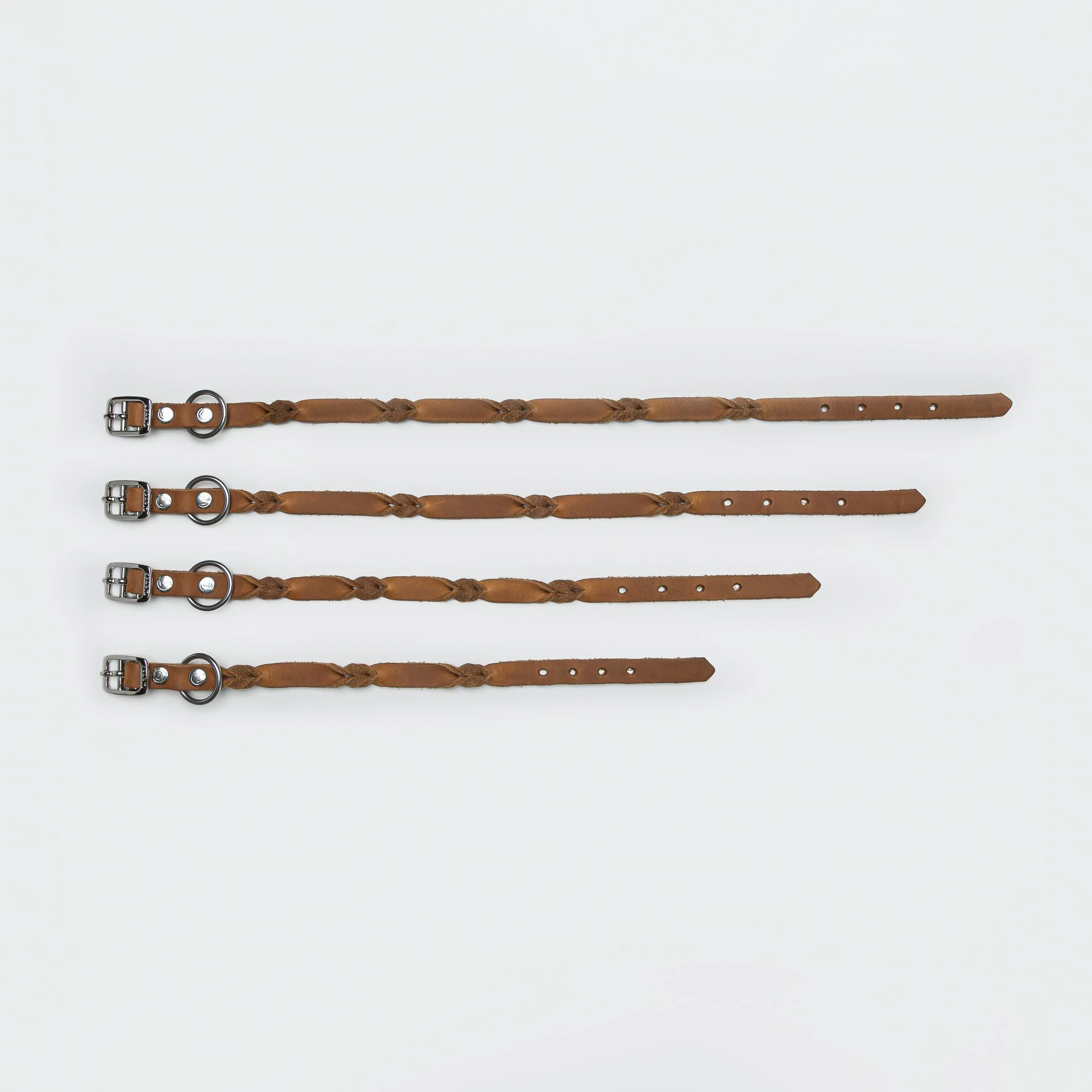 Besonders schmales Fettleder Hundehalsband für kleine Hunde mit geflochtenen Details in Schwarz mit Schließe und Nieten aus Edelstahl.