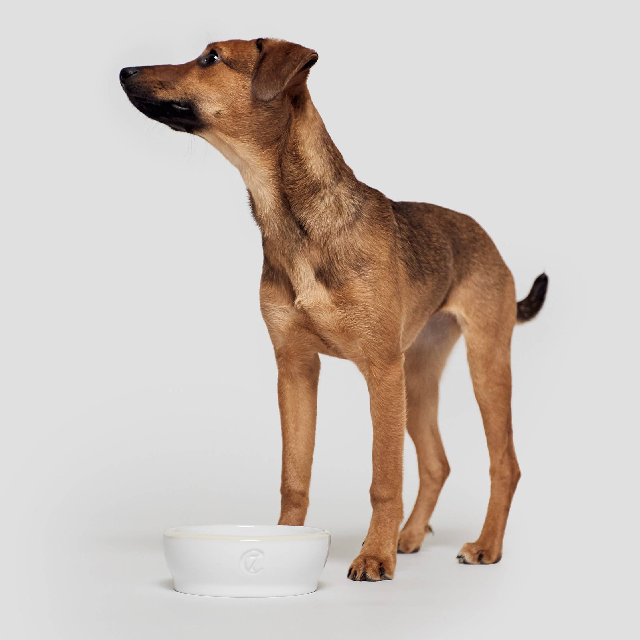 Hundenapf aus Keramik in Weiss mit geschwungener Form: Der Futternapf und Trinknapf für Hunde Jamie ist die ideale, standfeste Hundeschüssel im klassischen Design.