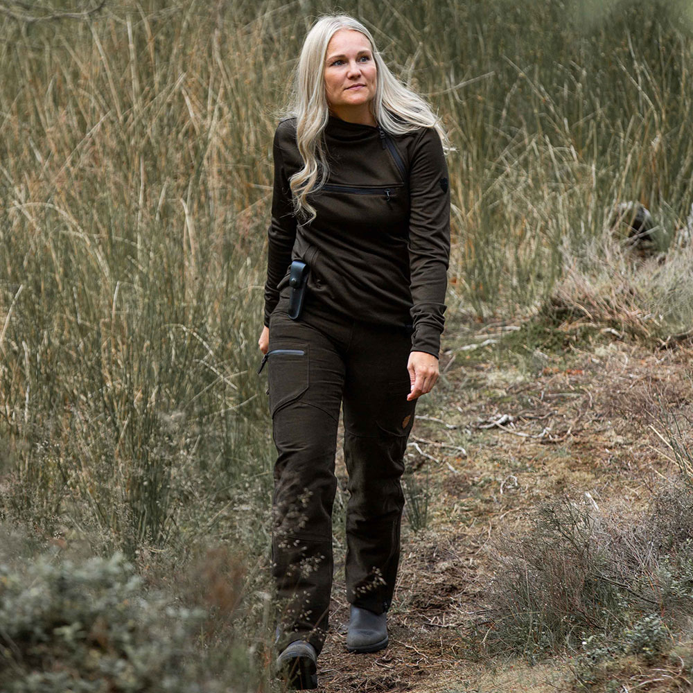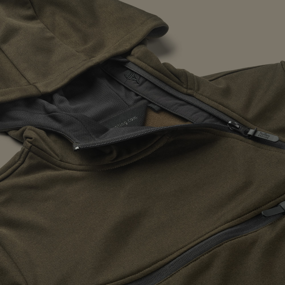 Das Jagd- und Outdoor-Fleece Saga brown ist als wärmeisolierende Zwischenschicht unter der Shell-Jacke entwickelt worden. Das Material ist extrem leise und flexibel, was das Fleece äußerst komfortabel macht. Als Funktionsmerkmal wurde auf der Vorderseite eine große Anoraktasche angebracht, die zusammen mit den 2 Eingrifftaschen gute Aufbewahrungsmöglichkeiten, sowie die Möglichkeit zum Wärmen der Hände bietet. Der asymmetrische Reißverschluss sorgt für einen attraktiven Look und erhöht die Benutzerfreundlichkeit, indem er verhindert, dass zu viele Reißverschlüsse übereinander liegen. Ein schöner und praktischer Pullover für Jäger und Outdoorer, die etwas anderes wollen als das, was der Nachbar hat.