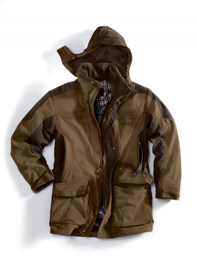 Hochfunktionelle, wasserdichte Ganzjahresjacke mit geruchsadsorbierendem Ergotarn-Filter, Venturi®-Liner, zusätzlich einknöpfbarem Steppfutter aus Thinsulate und insgesamt 9 Taschen!