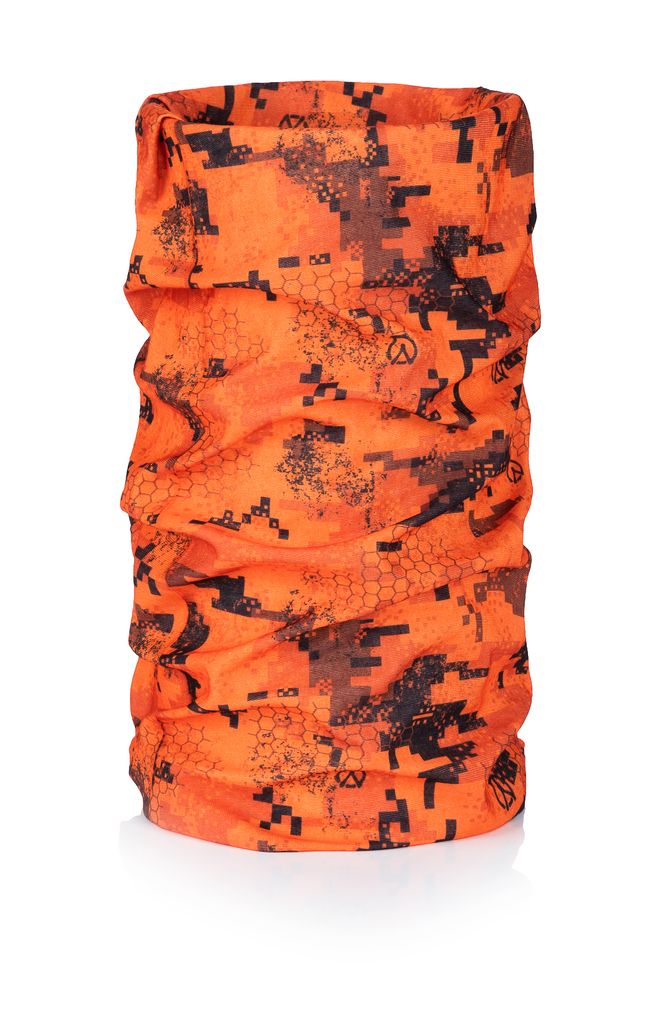 Mehrzweck-Schlauchschal aus schnell trocknendem Material. Entworfen in Finnland. Grün oder Signal-Farbe Blaze mit Digi-Camo-Muster.