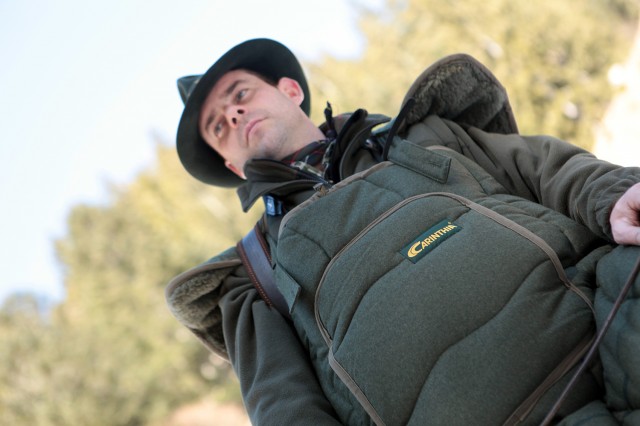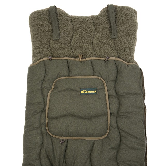 Besonders komfortables Modell mit entscheidenden Vorteilen. Wunderbar warm, völlig geräuschlos und angenehm leicht. Ein Kordelzug im Brustbereich verhindert Wärmeverlust. Ein Lederlatz am Fußende und ein Knopf seitlich am Muff ermöglicht es, den Ansitzsack beim Standortwechsel seitlich hochzuhängen. Auswaschbares wasserfestes Fußteil (gleichzeitig als Packsack verwendbar).