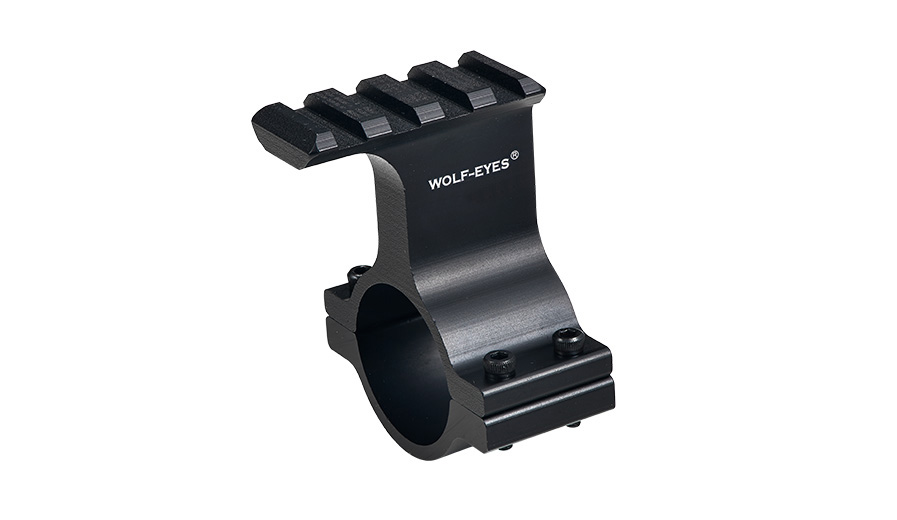 Spezialmontage für Zielfernrohre im Durchmesser 1"/24,5mm und 30mm mit einer erhöhten Picatinny-Schiene. Dies erlaubt auch die MOntage von lampen mit grösseren Lampenköpfen.