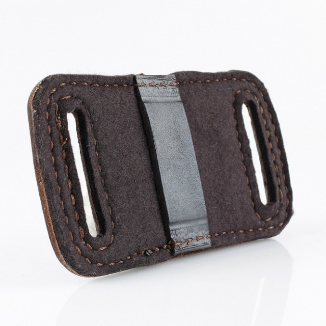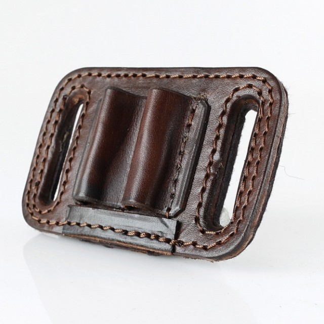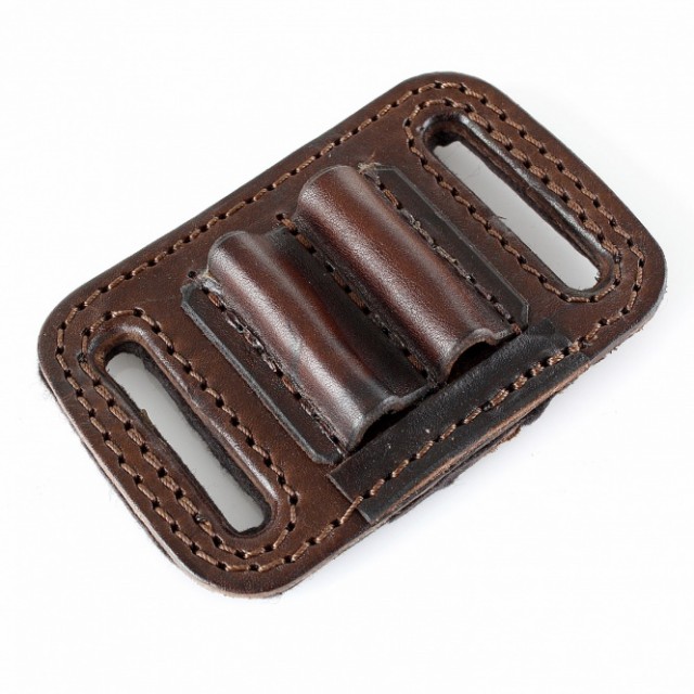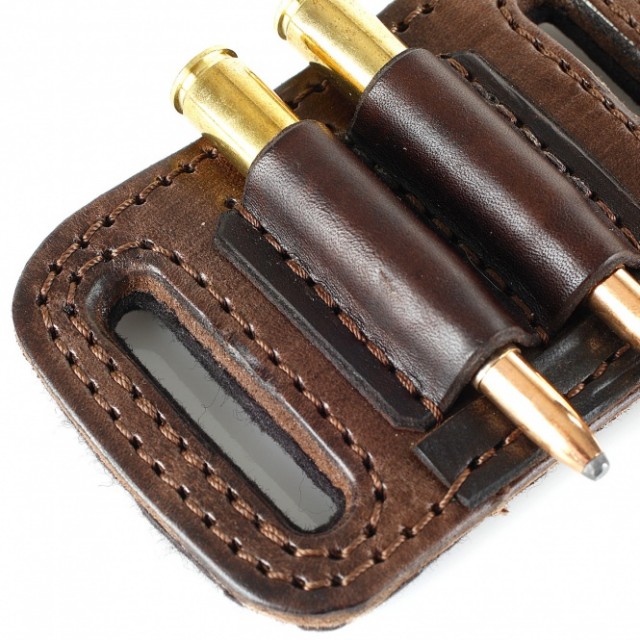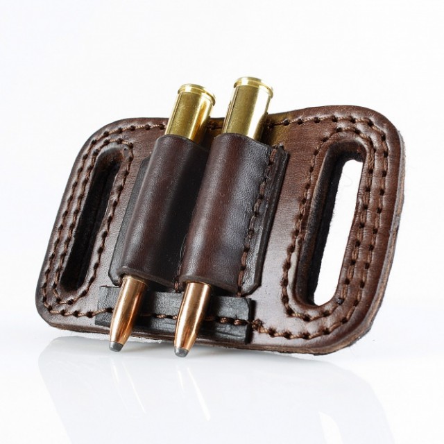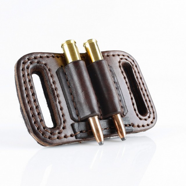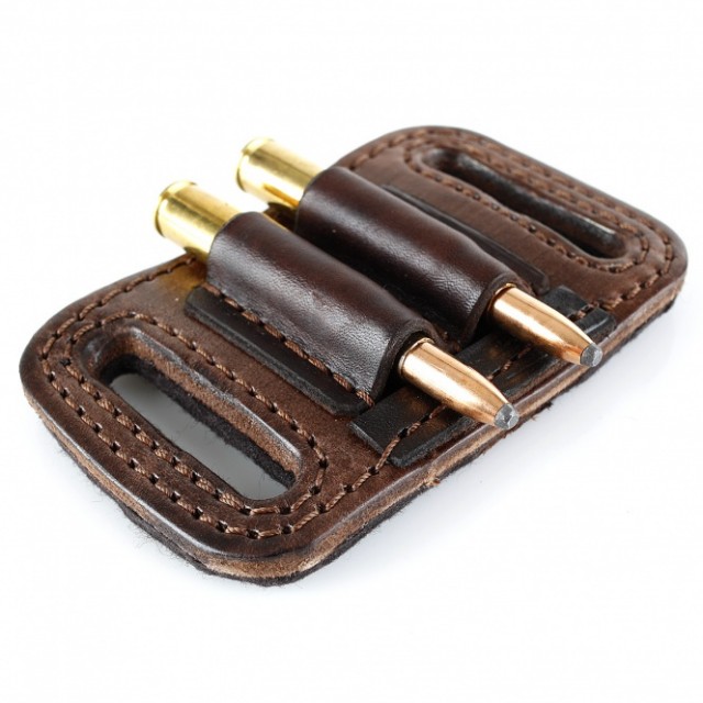 Gürtel Patronenetui - 2 x Kugel: • Material: Rindleder / Filz (Rückseite) • Farbe: dunkelbraun • Fassungsvermögen: 2 Kugelpatronen Kal. 6/7/8/9, u.ä. • Patronentaschen offen mit Patronenbegrenzer (verhindern das Durchrutschen) • Handarbeit / Sattlerqualität Masse: 11cm x 7cm (Länge x Breite)
