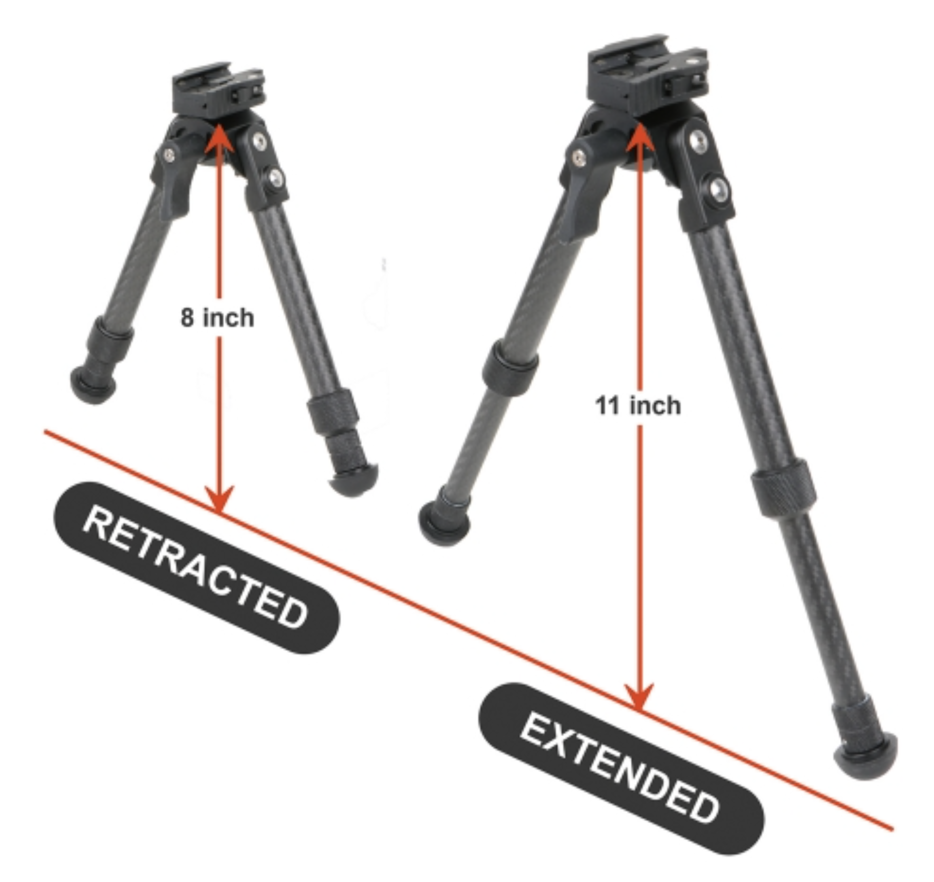 Die Beinlänge kann von 8 bis 11 Zoll eingestellt werden, was eine optimale Höhe für jede Schussposition und jedes Gelände ermöglicht. Diese Anpassungsfähigkeit sorgt für optimale Stabilität und Komfort in verschiedenen Umgebungen.