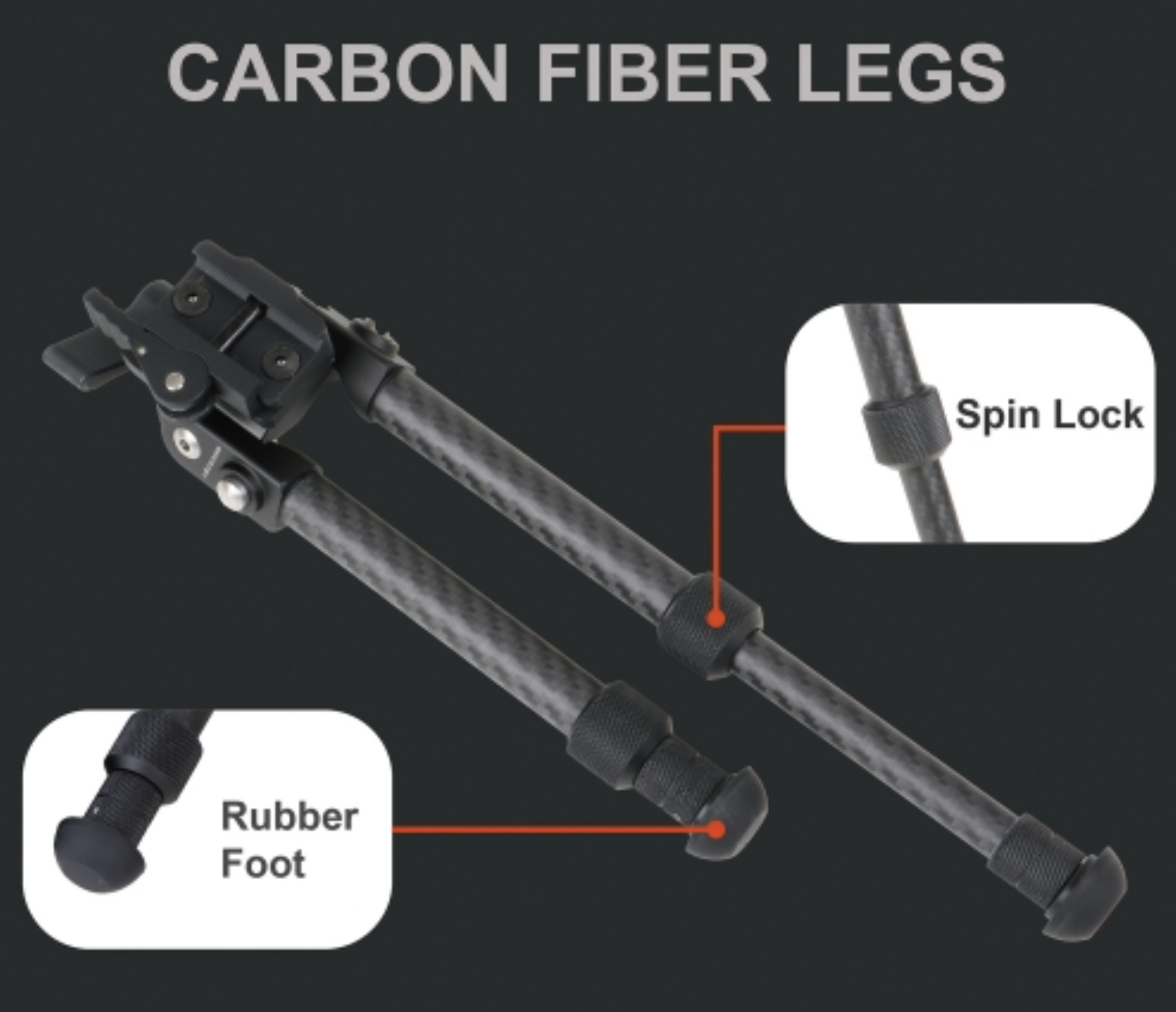Das Bipod ist aus hochfesten Kohlefasern gefertigt und bietet eine unvergleichliche Robustheit bei gleichzeitig extrem geringes Gewicht. Dadurch wird die Belastung der Ausrüstung erheblich reduziert, ohne dass die Stabilität darunter leidet.